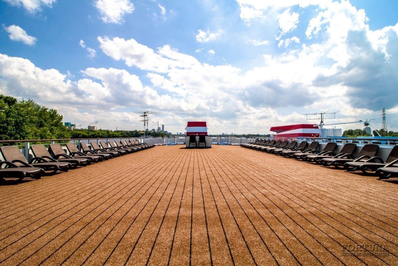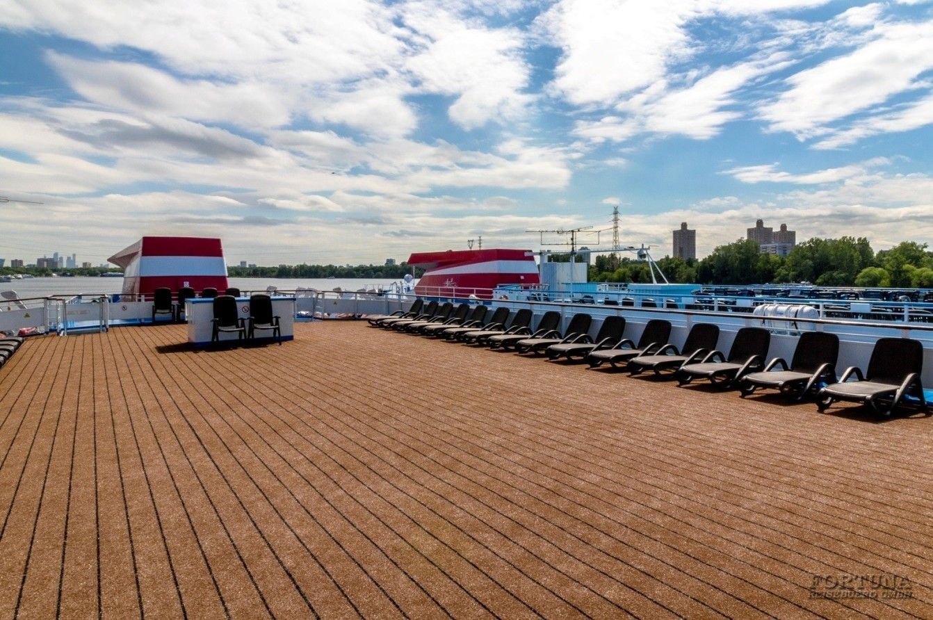 Широкие прогулочные палубы с креслами и просторная солнечная палуба приглашают Вас расслабиться и полюбоваться прекрасными видами речных пейзажей. Познакомьтесь вместе с нами с красотами и просторами России в приятной и непринужденной обстановке.
