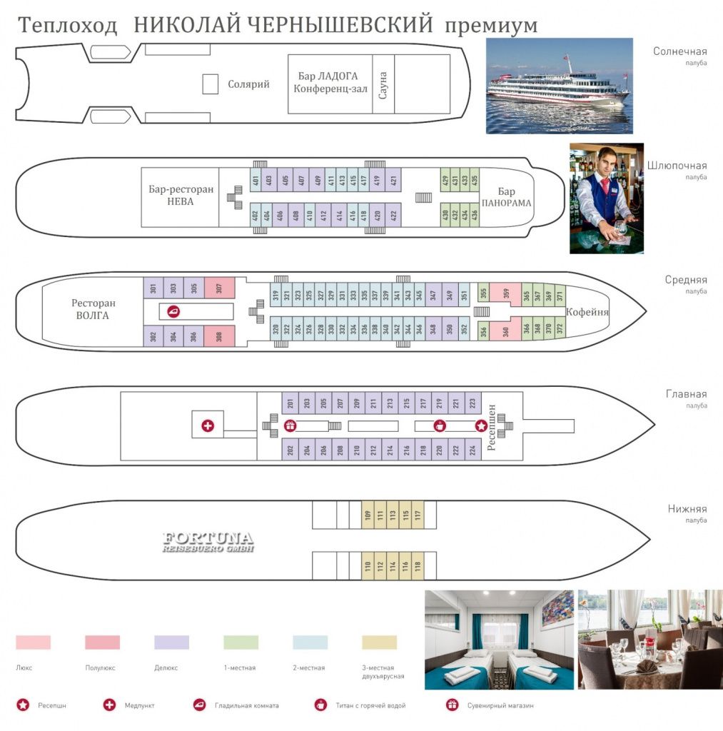 Каюты и услуги на теплоходе "Николай Чернышевский":