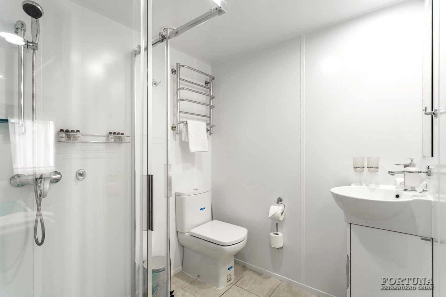 Каюты: Все каюты выходят окнами наружу и оборудованы кроватями (раздельные или объединённые), душем / туалетом, телевизором, сейфом и кондиционером.
