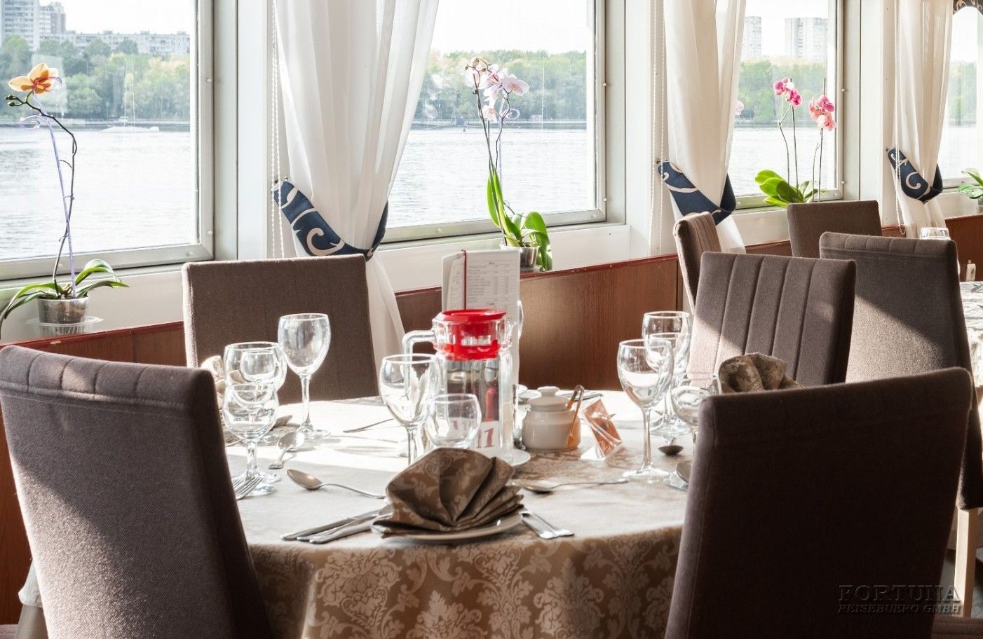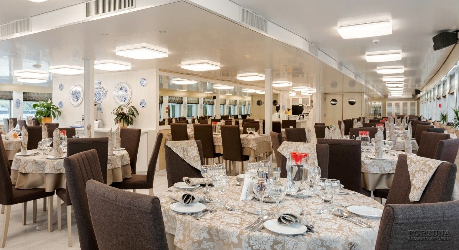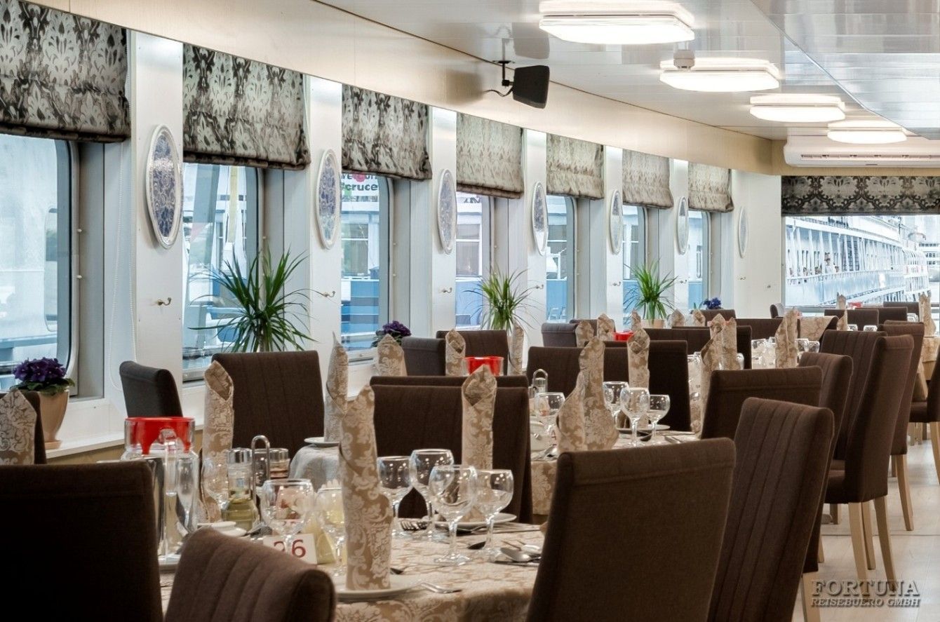 Обед – заказная система питания (выбор блюд со 2-го дня круиза). Включенные напитки (без ограничения): чай, кофе. Фиксированная рассадка;