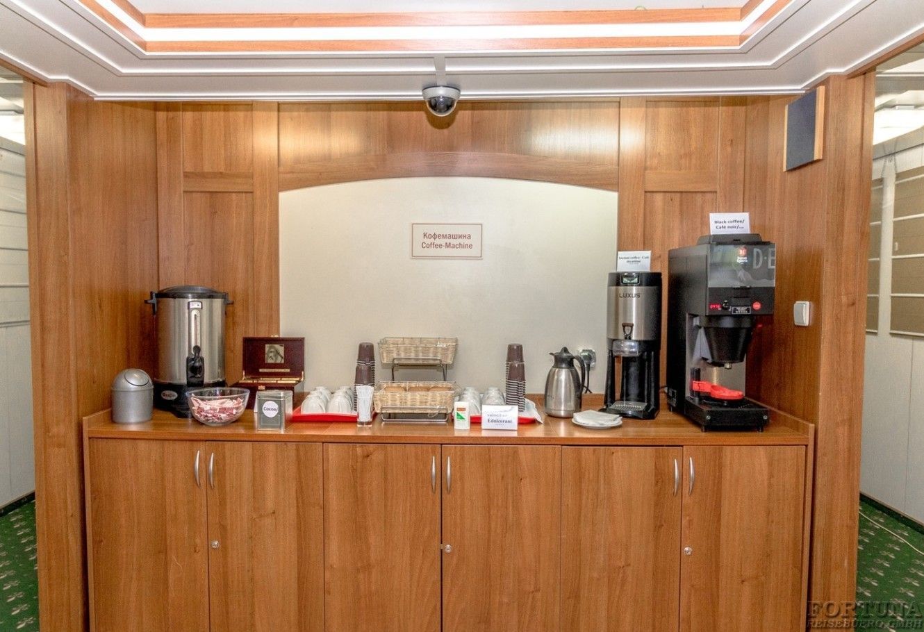 Кофе-стейшн – общедоступный стол с горячими напитками. Время работы: с 6:00 до 00:00.